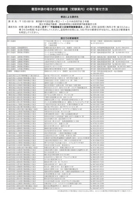 Information · 2026/01/16 令和8年不動産鑑定士試験概要 受験願書の配布先等はダウンロード版にてご案内しております。 当協会でもチラシを配布しておりますのでお気軽にお立ち寄りください。 ご健闘をお祈りしております。 (画像クリックで拡大します) チラシのダウンロードはこちら 令和8不動産鑑定士試験概要 令和8不動産鑑定士試験概要.pdf PDFファイル 5.3 MB ダウンロード tagPlaceholderカテゴリ: